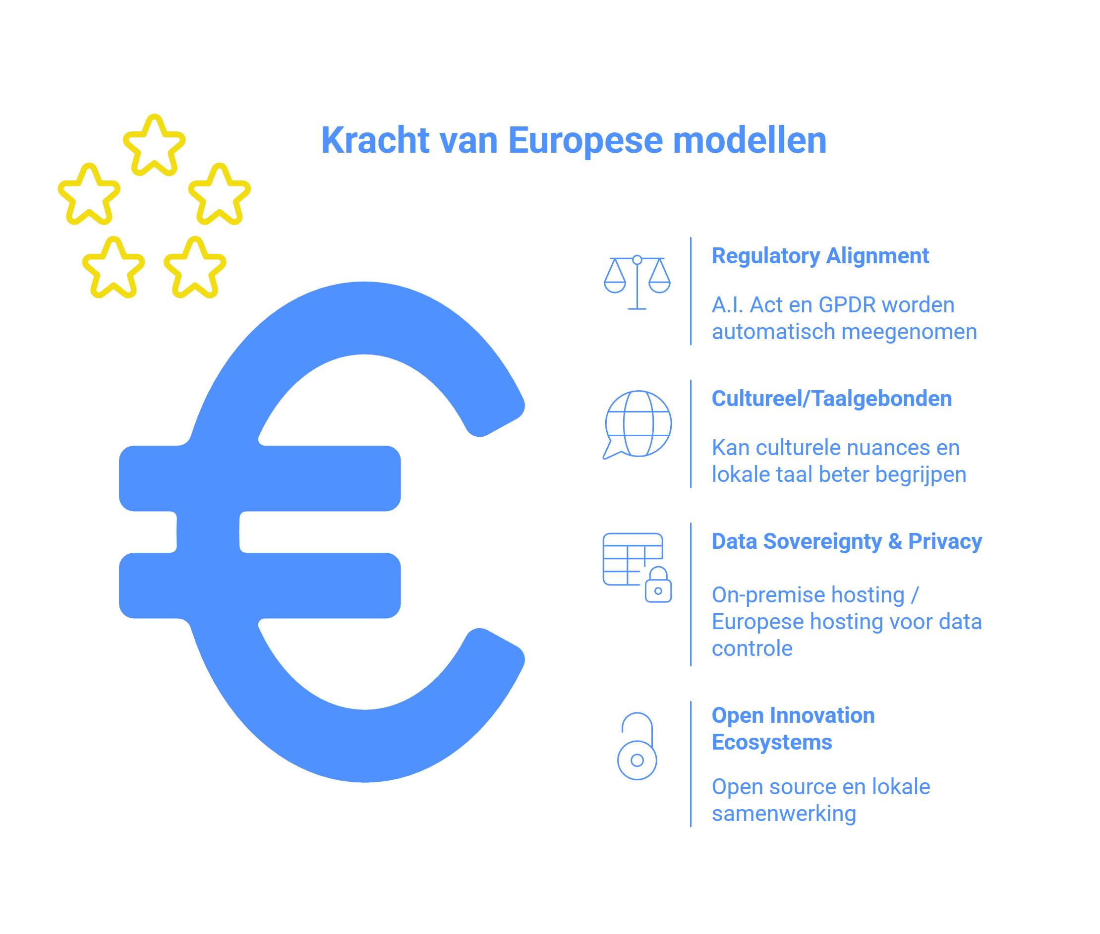 Het nadeel? Europese modellen hebben meestal kleinere datasets en minder schaalkracht. Dat kan betekenen: lagere snelheid, minder vloeiende taalverwerking of minder "slimme" antwoorden.